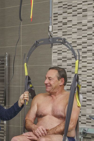 De gebruiker wordt vervolgens rechtstandig en stabiel opgetild, zonder schommelbewegingen of contact met de rug of billen. Dit kan een groot voordeel zijn bij mensen met gevoeligheid, decubitus of weinig balans.