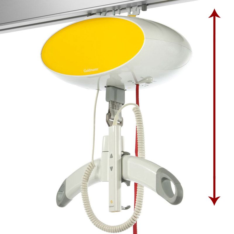 - Lateraalmotor – om jezelf elektrisch door de plafondrails te verplaatsen (links/rechts)