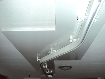 - Bevestiging van multiplex stroken tegen of in het bestaande gipsplafond, waaraan de rails veilig gemonteerd wordt.